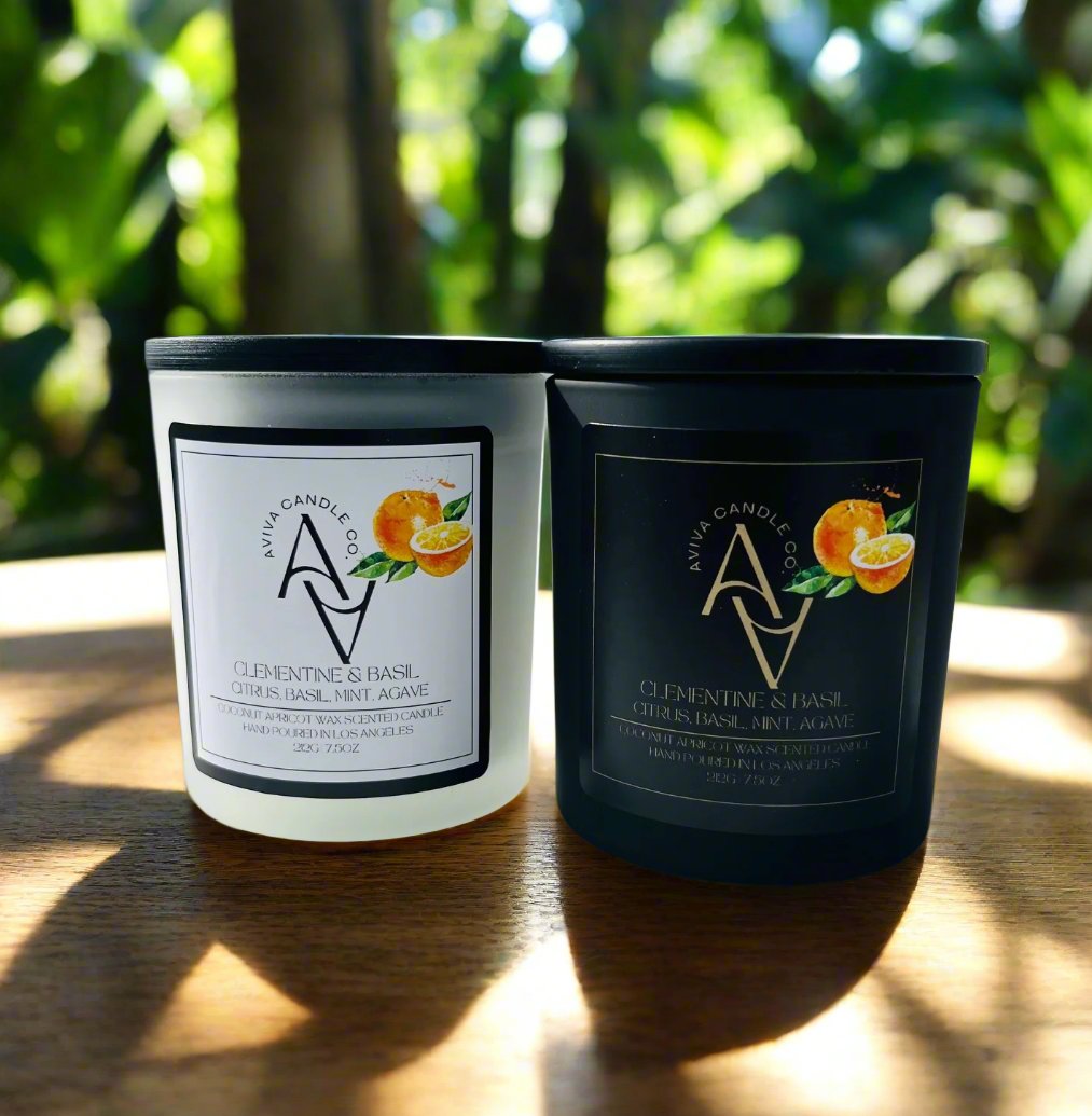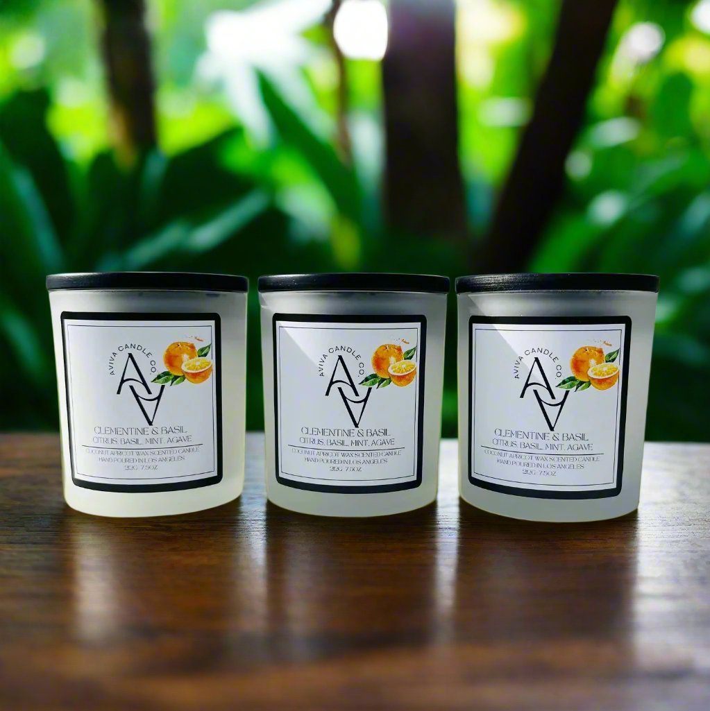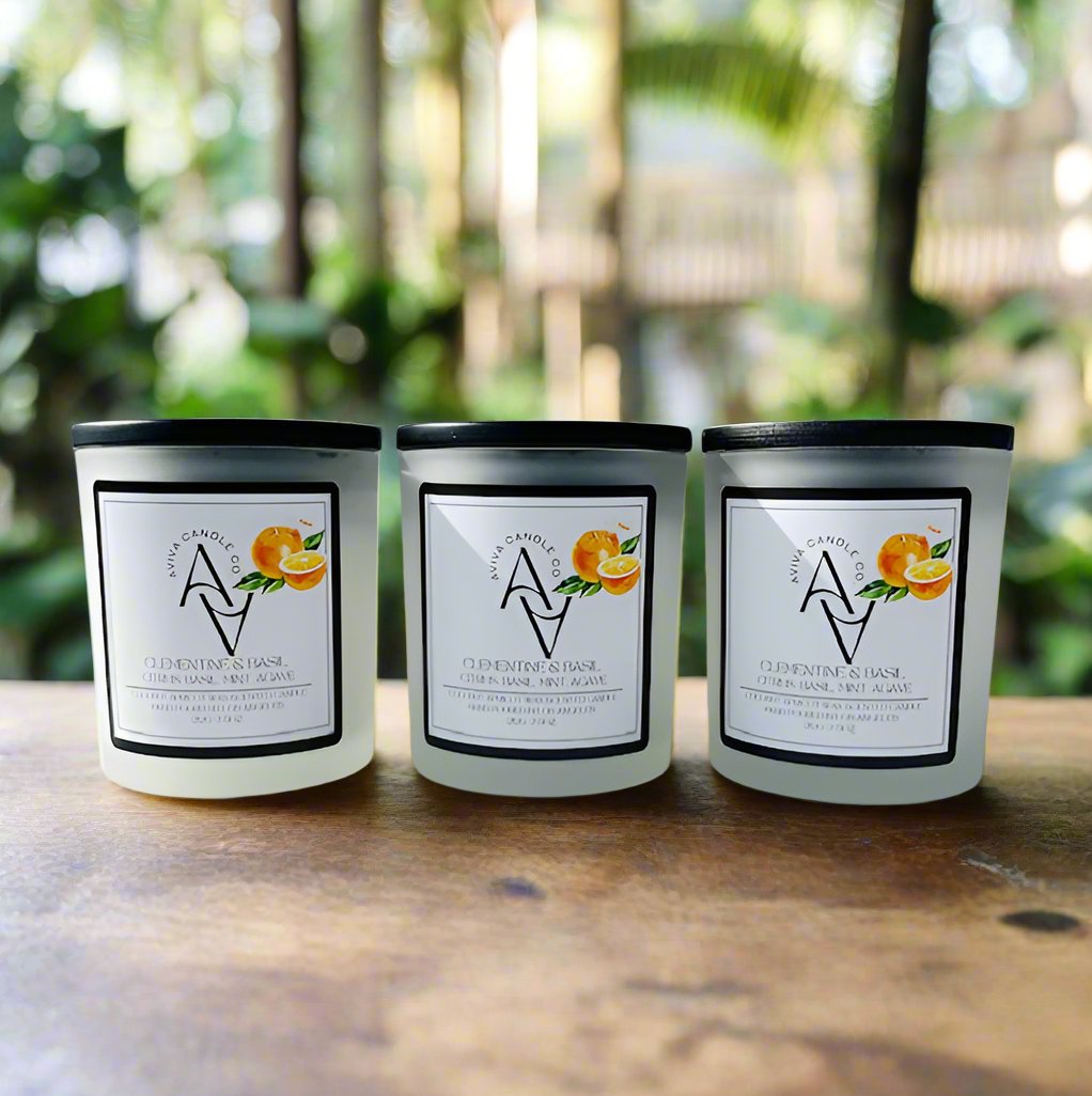 Experience the lively and invigorating aroma of our Clementine & Basil candle. Featuring hints of citrus, basil, chamomile, orange peel, mint, agave, and tomato leaf, it captures the spirit of a bustling marketplace. The subtle tartness will tingle your cheeks and tantalize your taste buds. This candle is fresh, sweet, and earthy, without being overpowering. Smells like picking fresh clementines from the orchard!!