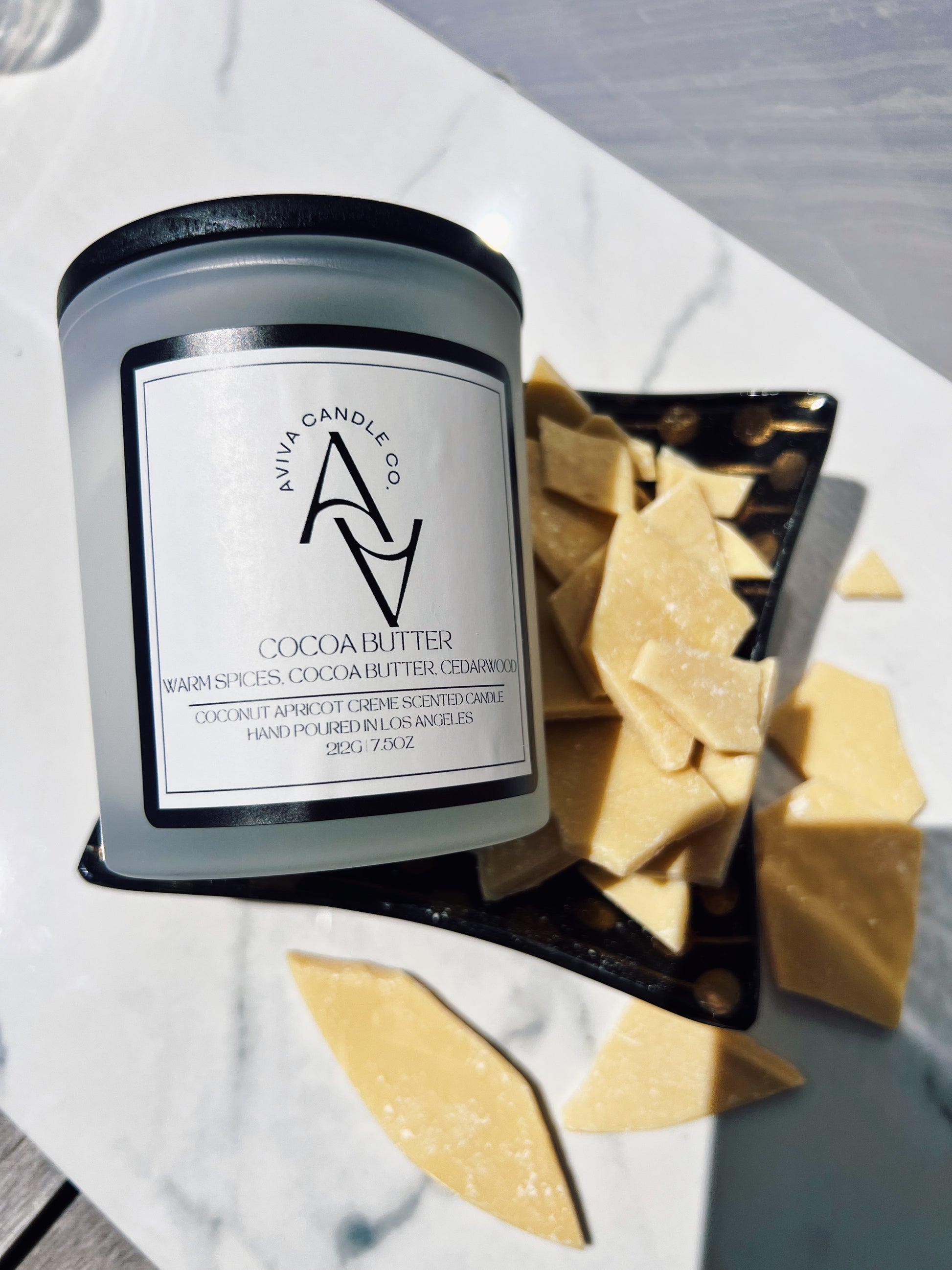 Indulge in the comforting embrace of our luxurious Cocoa Butter candle, designed to evoke a feeling of warmth and tranquility. Immerse yourself in the intricate blend of inviting spices, soothing sandalwood, velvety cocoa butter, and a subtle touch of coconut sweetness. Transform your living space into a serene haven, welcoming you with an earthy ambiance all year round. Experience ultimate relaxation and create a cozy atmosphere with this exceptional candle.